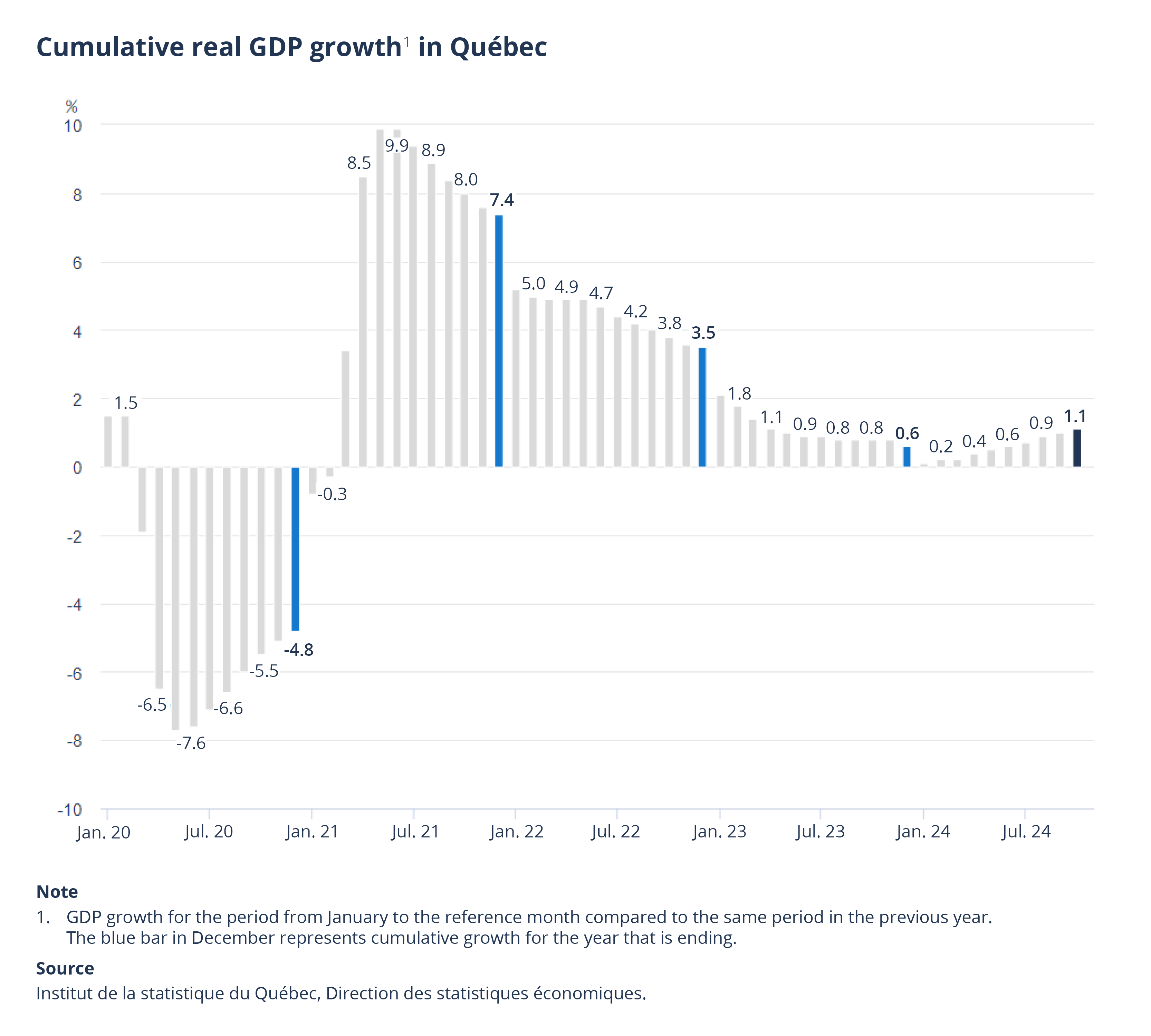 Cumulative total for the first ten months of 2024: Québec’s real GDP up 1.1%