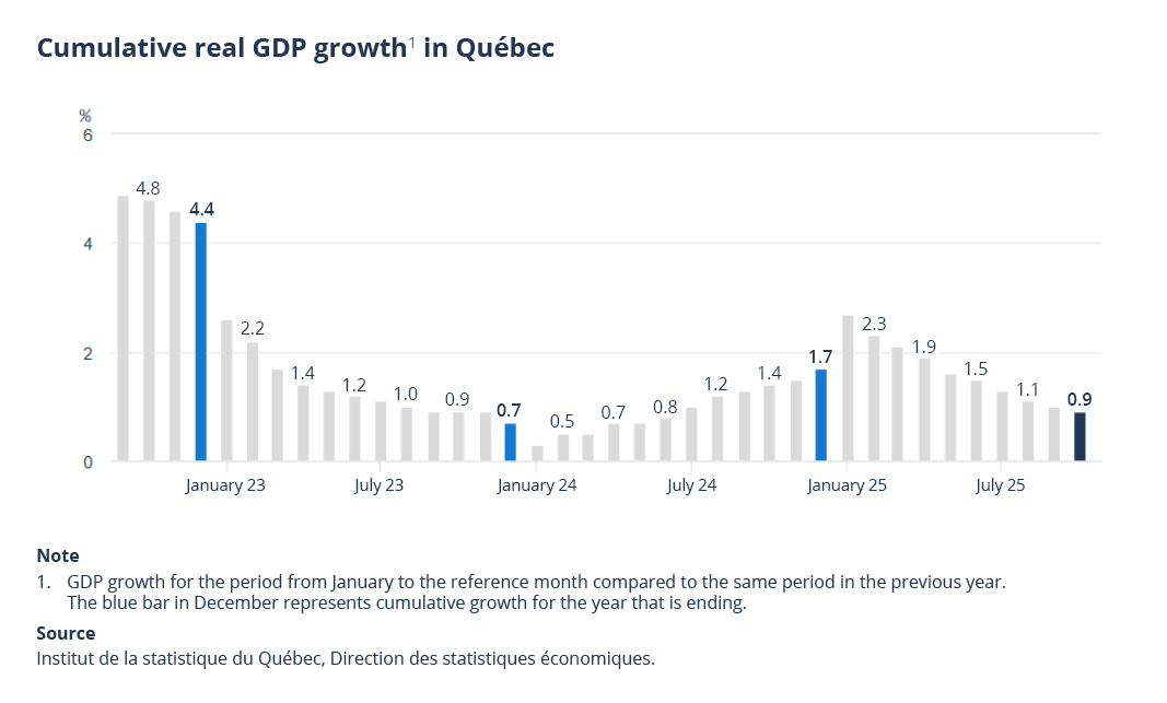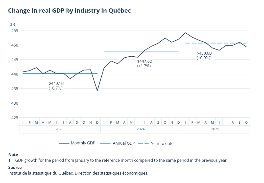 Cumulative total for the first ten months of 2025: Québec’s real GDP up 0.9%