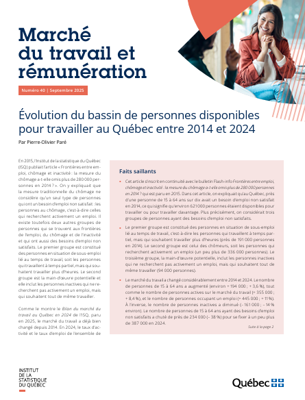 Faits saillants sur l’évolution du bassin de personnes disponibles pour travailler au Québec entre 2014 et 2024 (in French only)