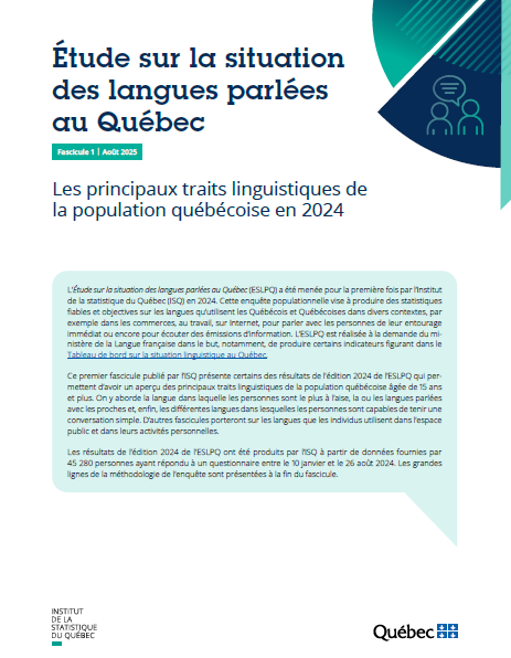 Données sur les différentes langues parlées au Québec dans divers contextes de vie. Nouveauté : publication sur l’utilisation des langues dans les activités personnelles